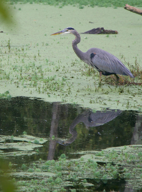 A great blue heron rests in the water at Murfree Spring Wetlands.