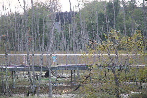 The boardwalk was closed to the public in December of 2022 for structural maintenance. Necessary repairs have been complicated and costly, but the trail has now partially reopened. The professional and amateur photographers hoping to capture the perfect shot of river otters or great blue herons have already found their way back, along with students of the natural sciences experiencing the field outside the classroom. In the quiet hours of dusk and dawn, they speak just above a whisper, excitedly relating their sightings of the day.
